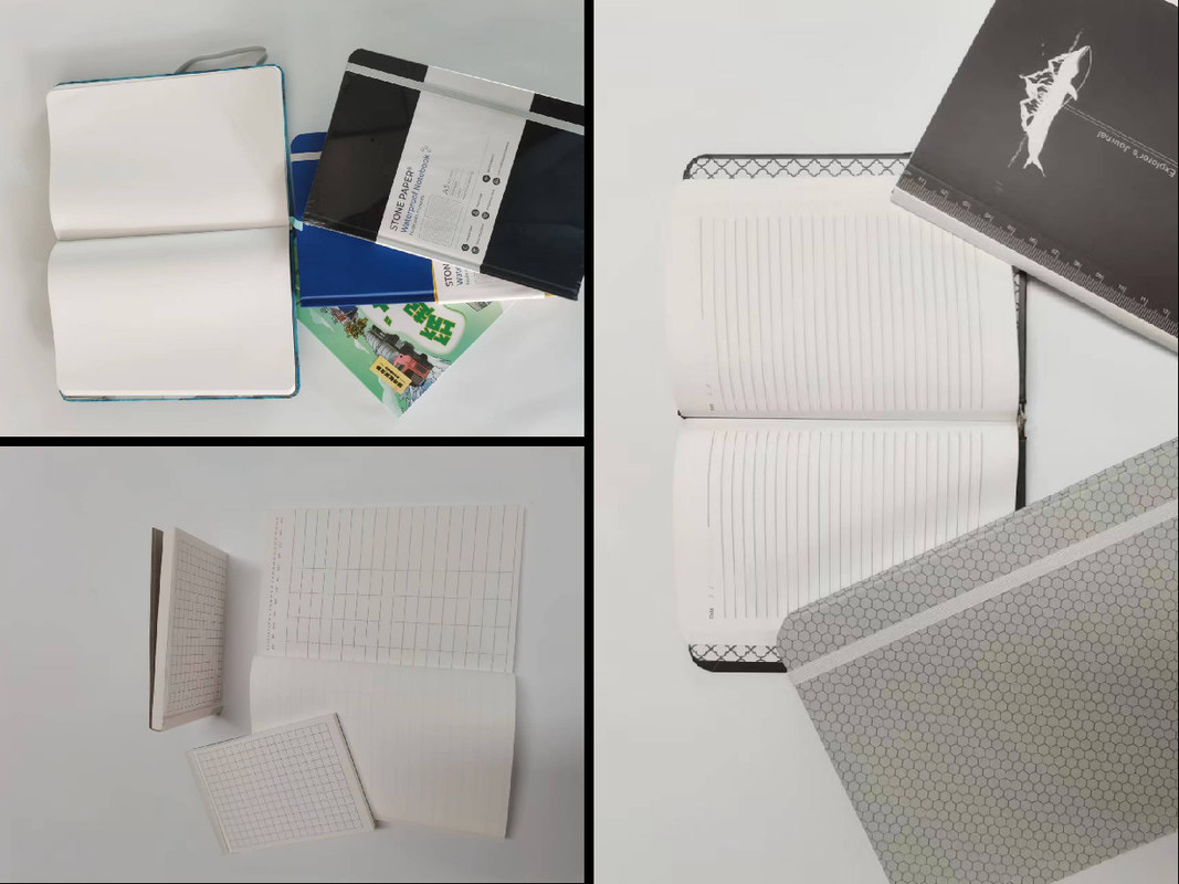 Vật liệu: giấy đá làm từ bột đá, có thể phân hủy hình ảnh, tái chế